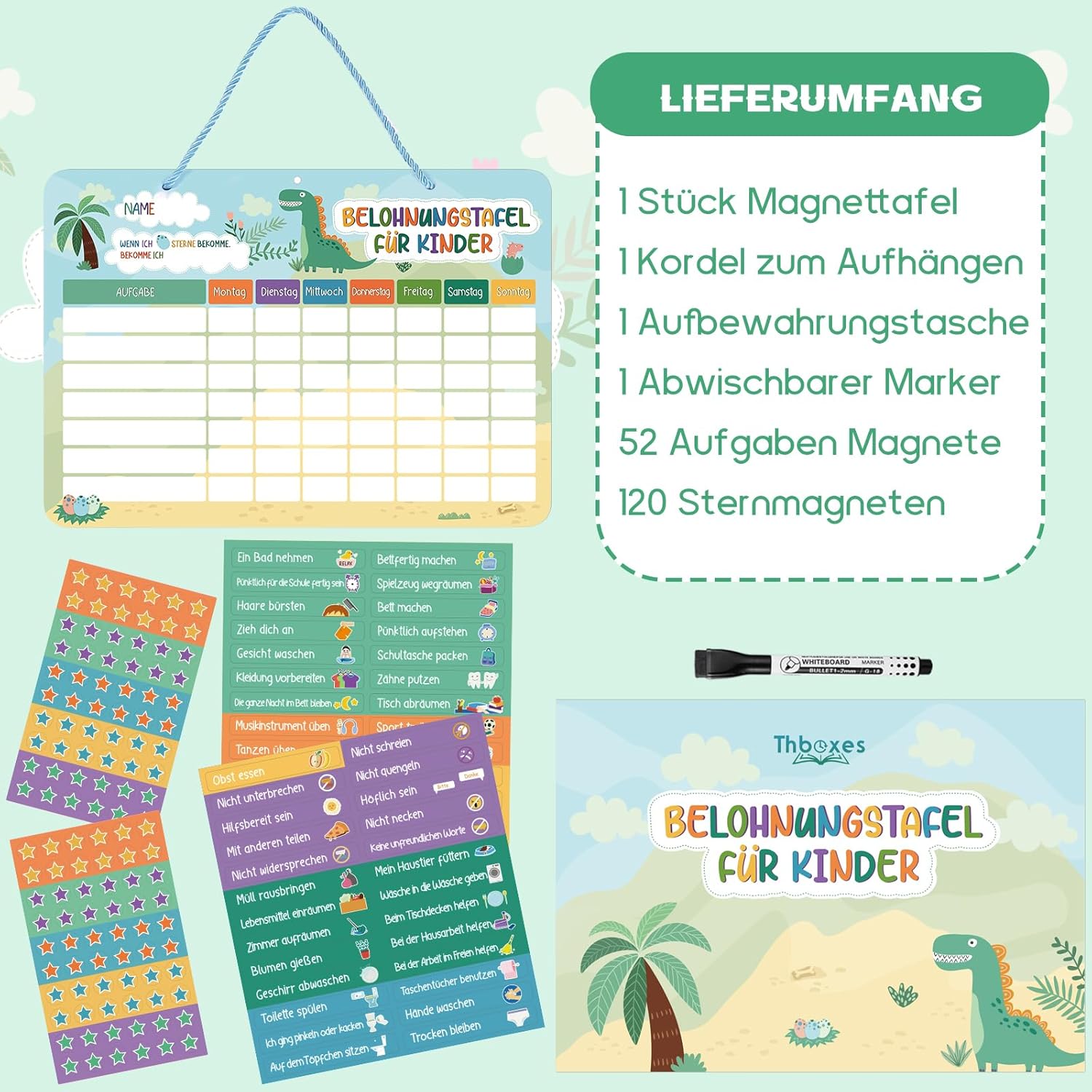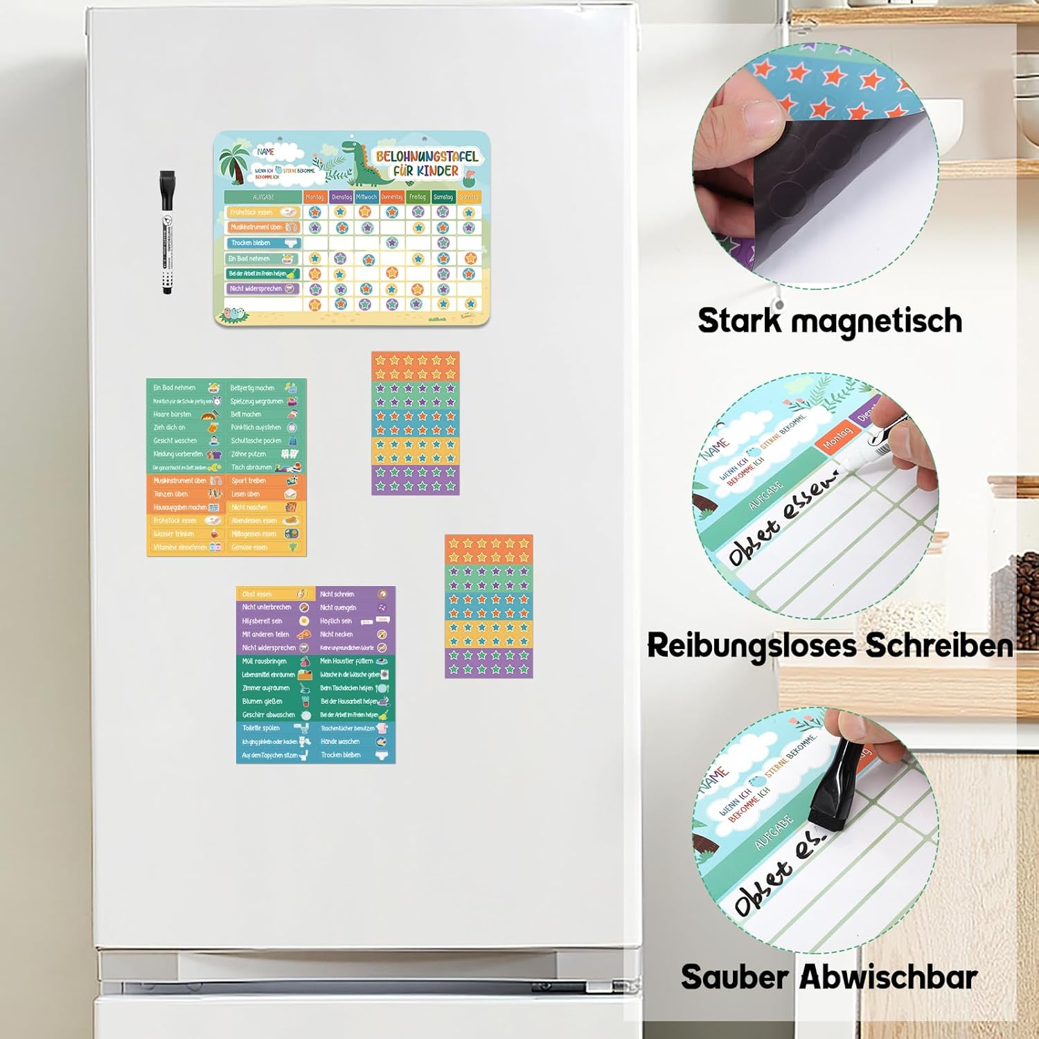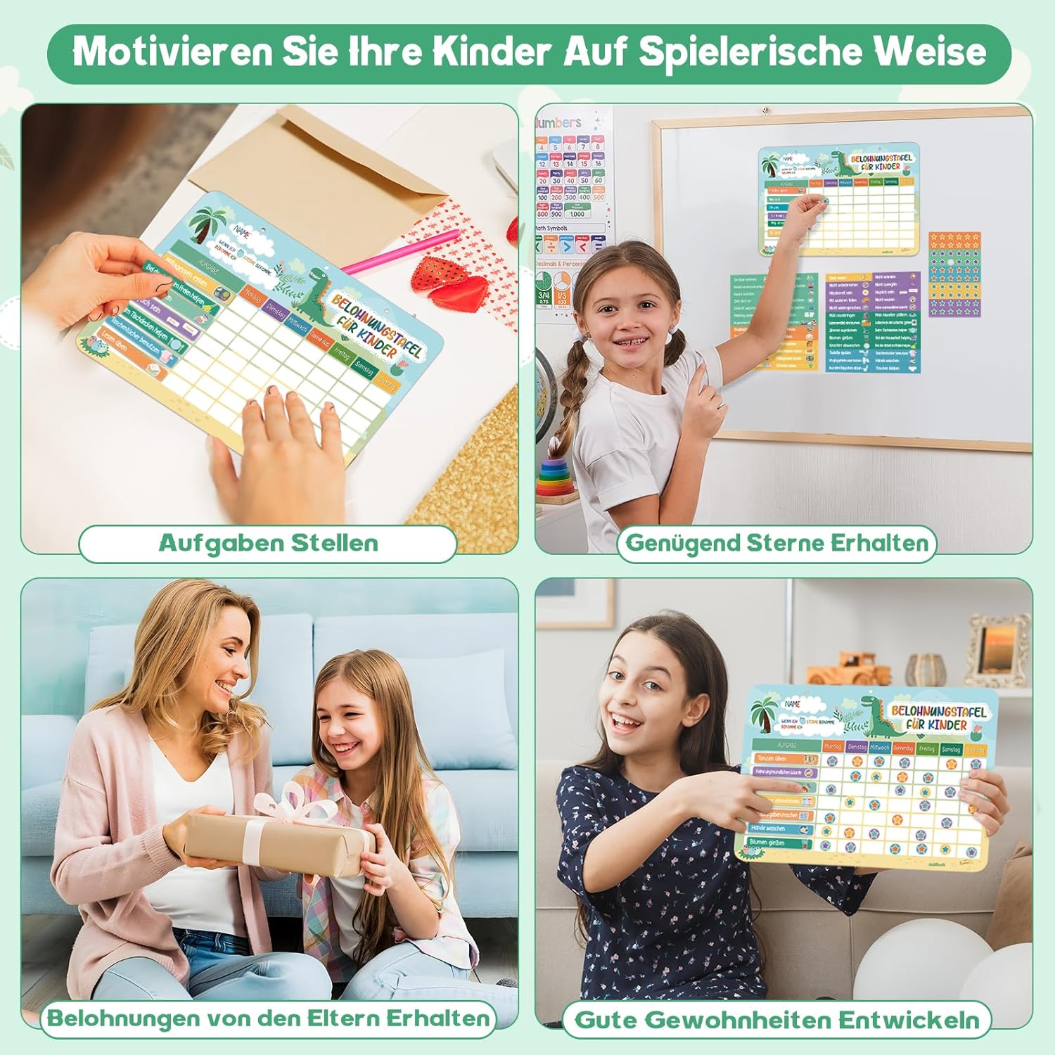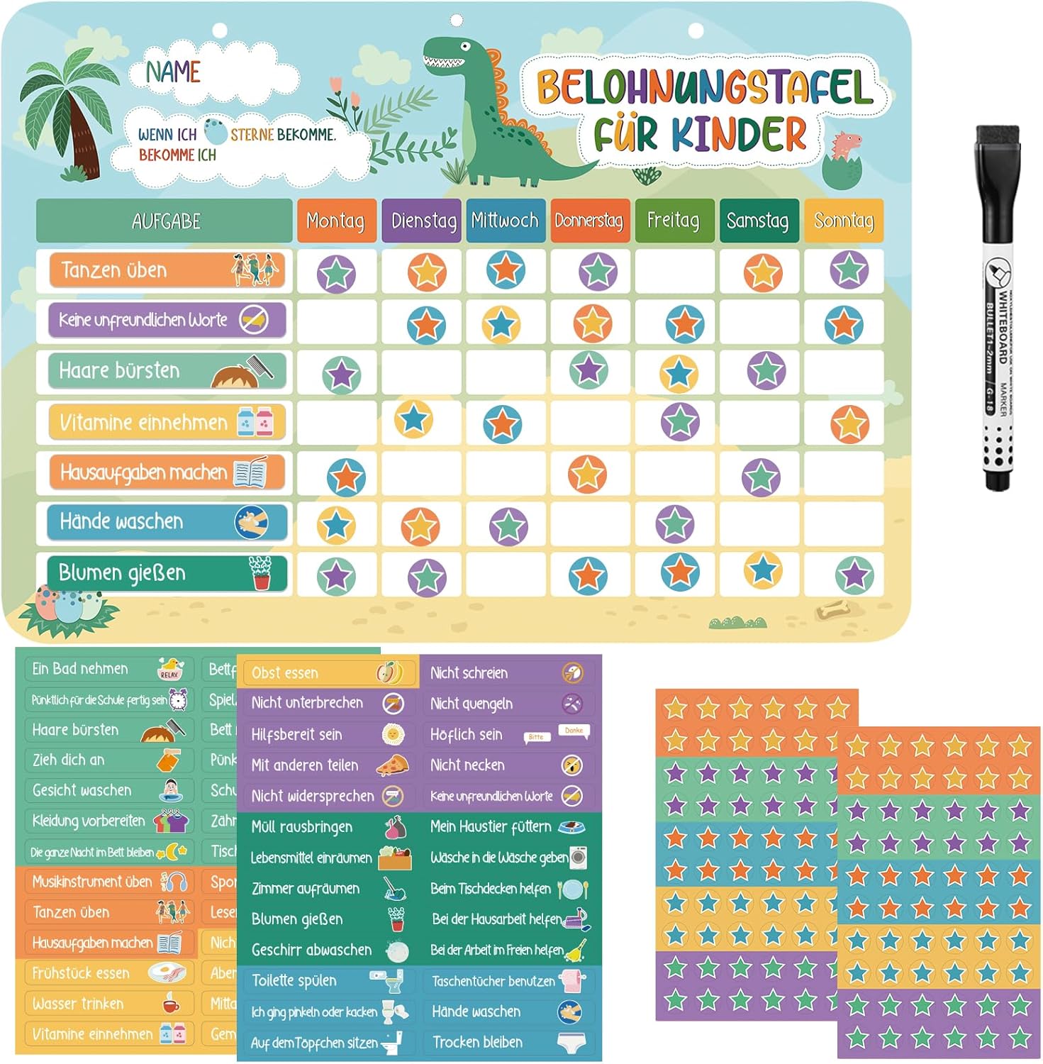 Die Belohnungstafel für Kinder bietet Eltern ein effektives Hilfsmittel, um Kinder auf spielerische Weise für Aufgaben zu motivieren und gutes Benehmen zu fördern. Nie wieder nervige Streitereien über Zähne putzen, Anziehen oder Teller wegräumen.