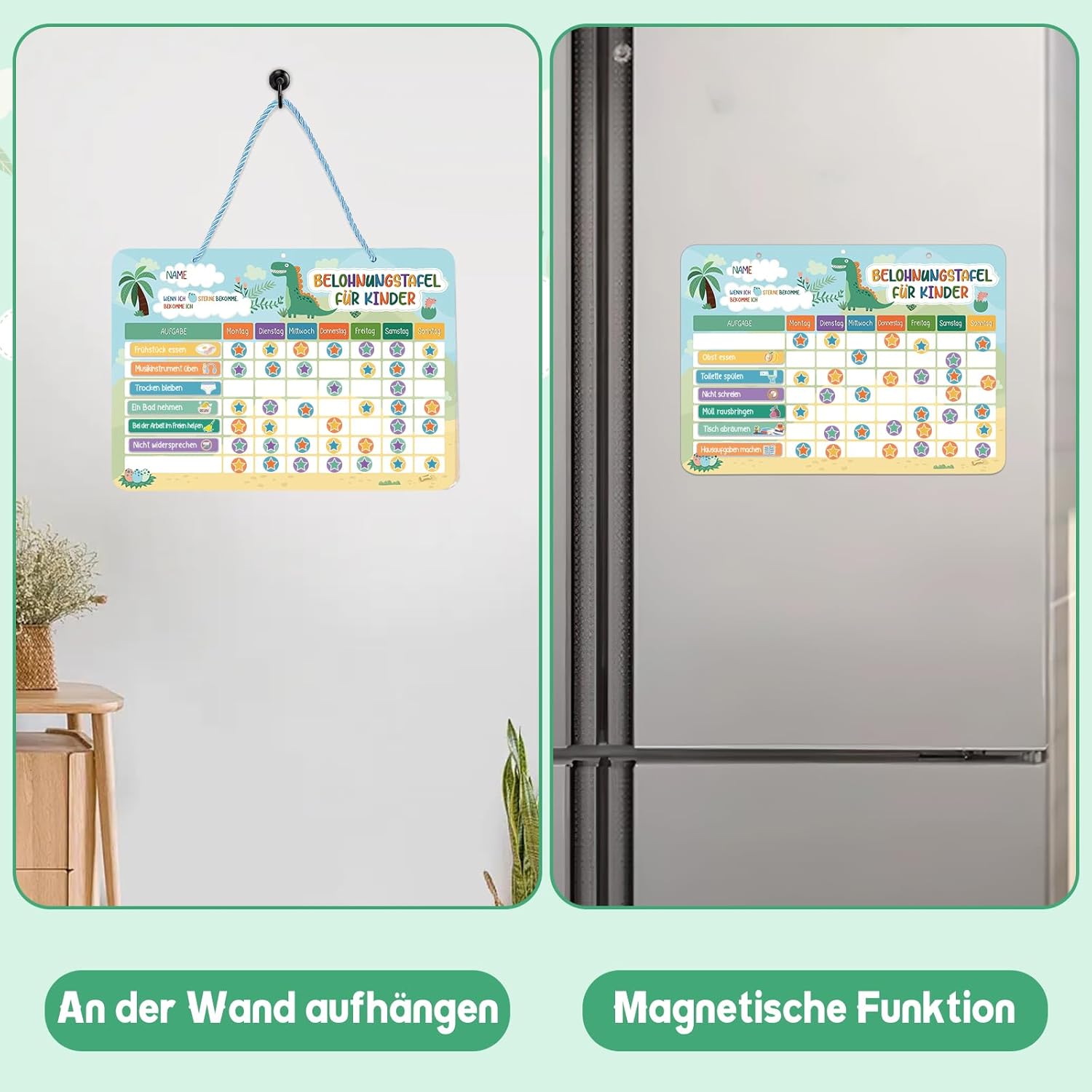 Die Belohnungstafel für Kinder bietet Eltern ein effektives Hilfsmittel, um Kindern auf spielerische Weise Verantwortung zu lehren. Die magnetische Eigenschaft sowie die liebevollen Motive lassen Kinderaugen erstrahlen und ein Verständnis für Aufgaben und Regeln entwickeln.